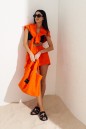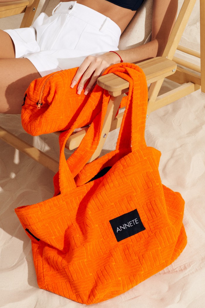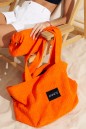 Вместительная стильная сумка шоппер выполнена из фактурного полотна цвета мандарин.