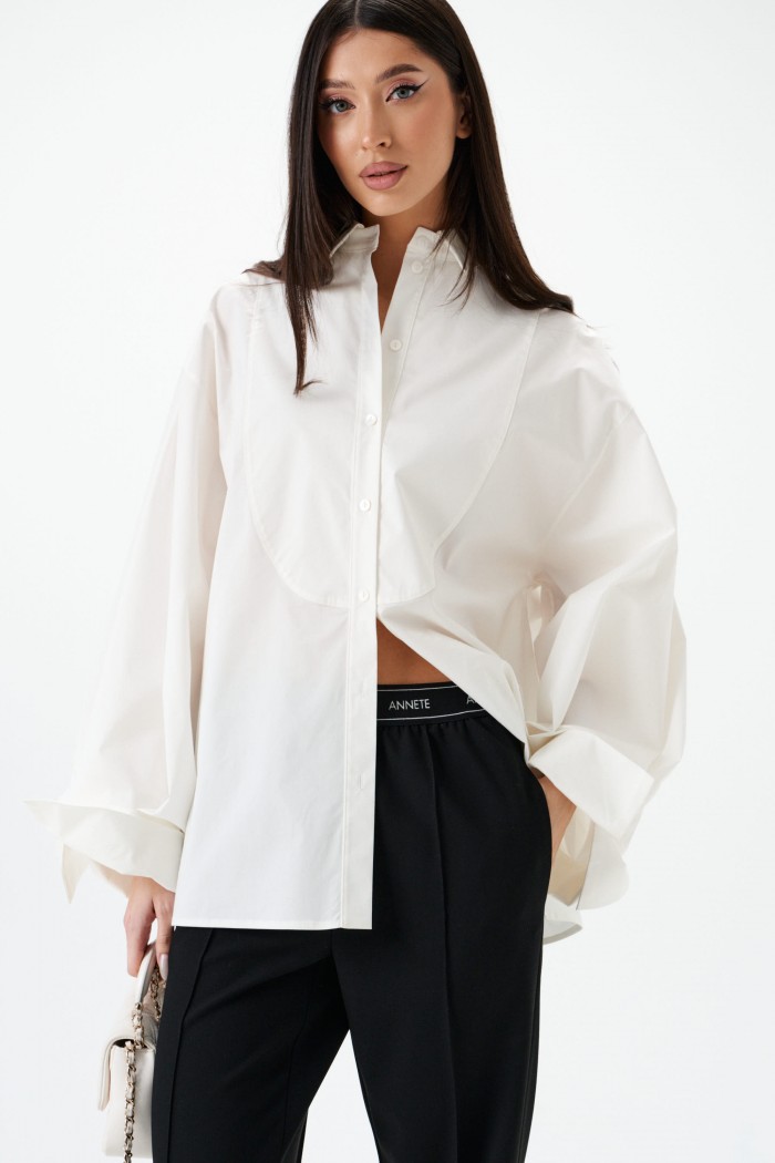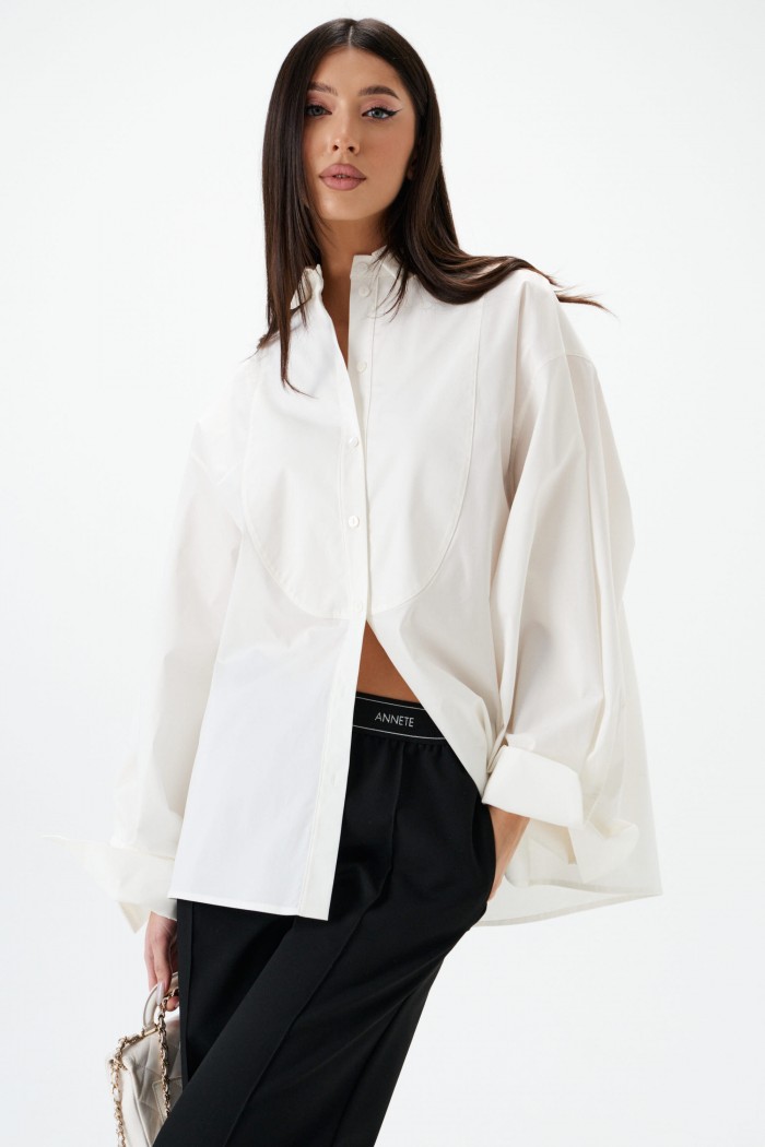 Рубашка прямого кроя. Выполнена из хлопковой ткани . По переду фигурная кокетка.