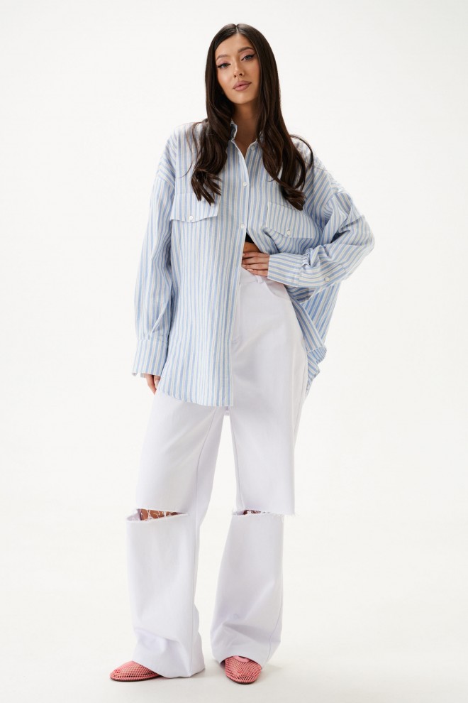Рубашка прямого свободного кроя. Выполнена из хлопкового полотна.