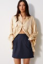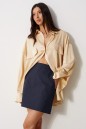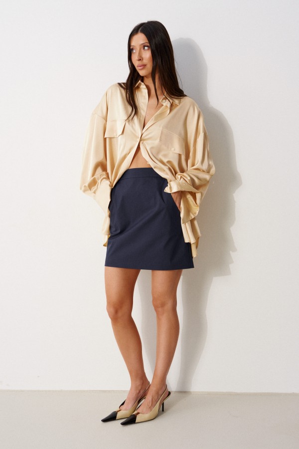 Блузка прямого, свободного кроя. Выполнена из мягкого текстильного полотна. Воротник отложной. Застёжка центральная на пуговицы. По переду на уровни линии груди клапаны - имитация карманов. Спинка отрезная со сборкой. Рукав спущенный, свободный, с манжетой на пуговице. Длина рукава от края горловины 79 см. Длина спинки 77 см