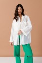 Рубашка прямого свободного кроя с разрезом по спинке выполнена из белого хлопкового полотна.