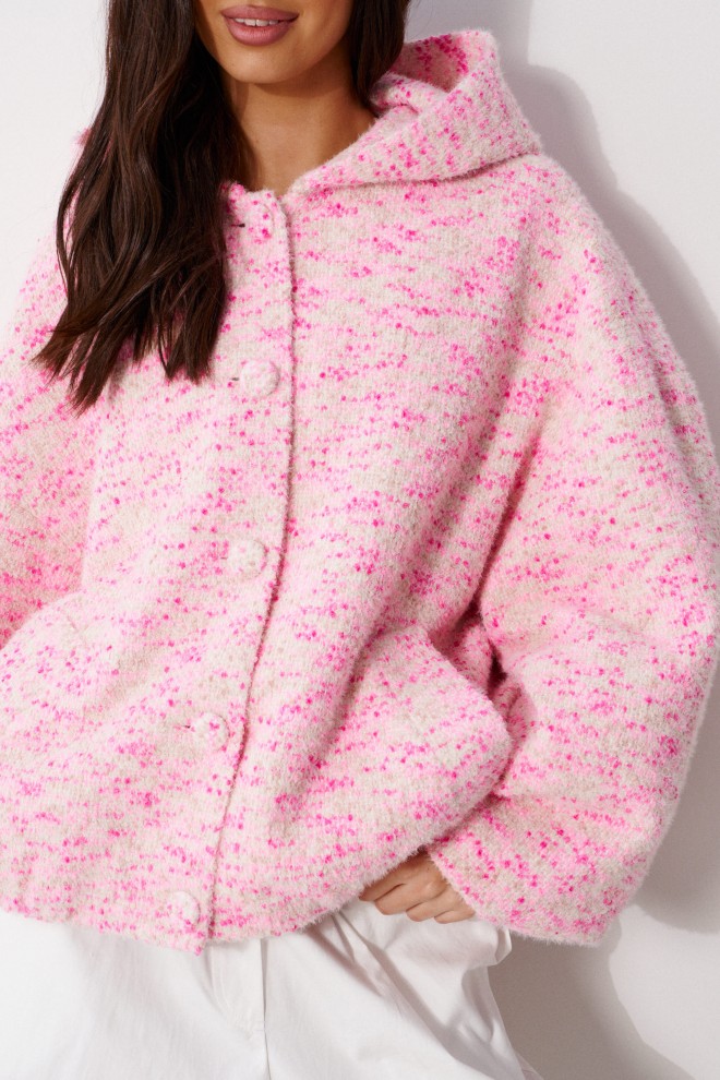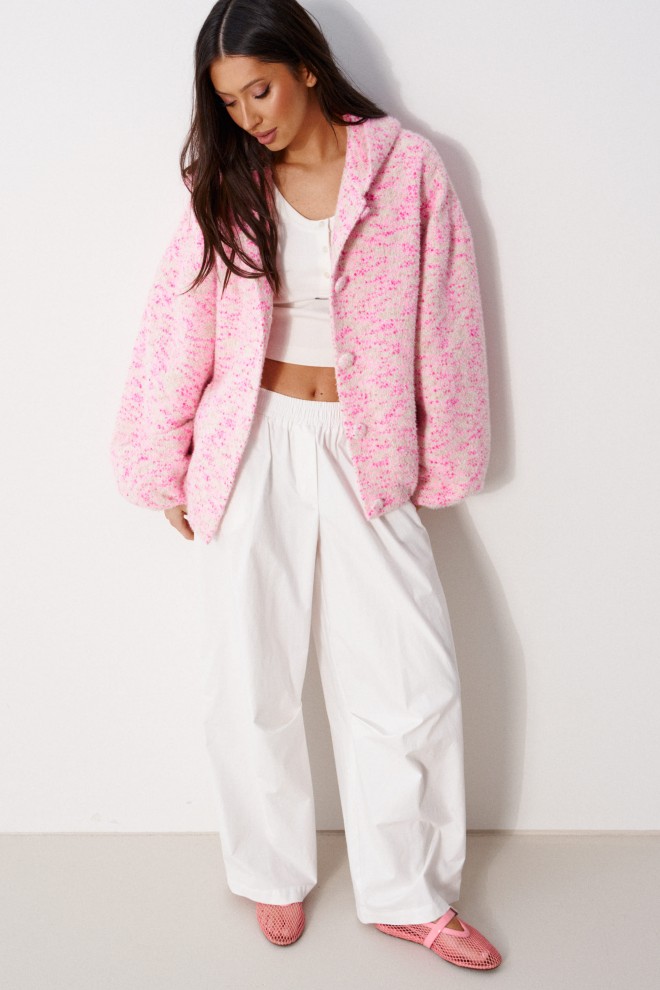 Жакет (бомбер) женский, прямого силуэта , на подкладке. Выполнен из трикотажного полотна бежево-розового цвета.