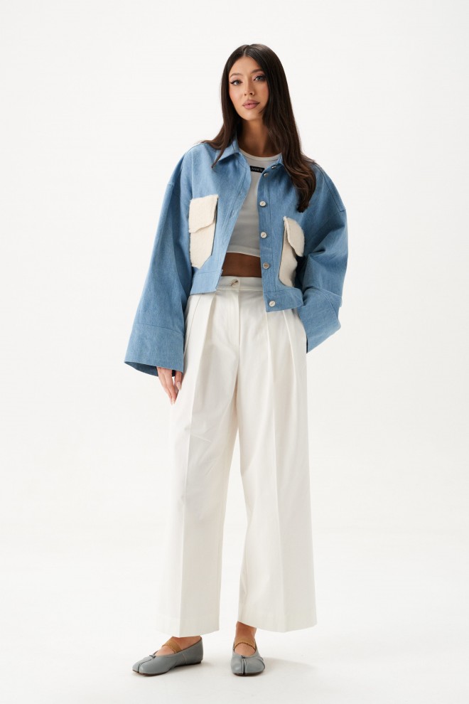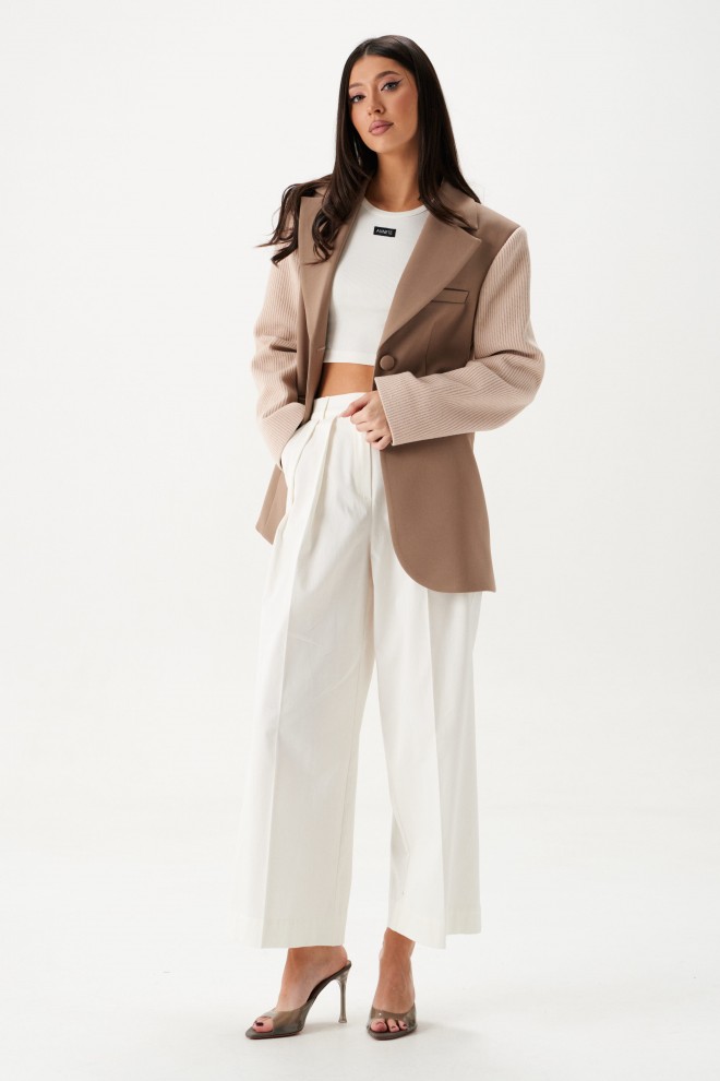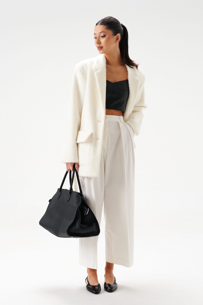 Брюки свободного кроя с акцентами декоративными складками. Характеристики: свободный крой, пояс стабильный, по поясу нашиты шлевки, застёжка пуговичка, молния, глубокие декоративные складки по передней части изделия, в боковых швах косые карманы. Длина изделия 100 см.