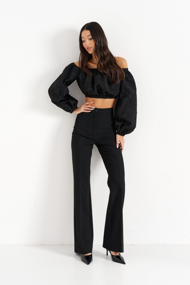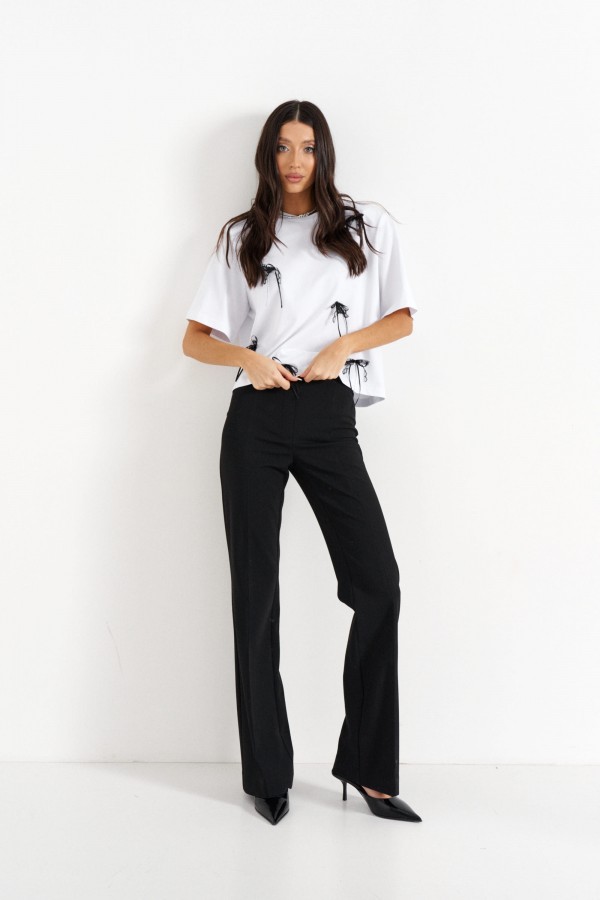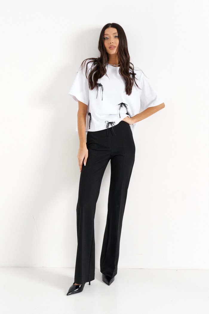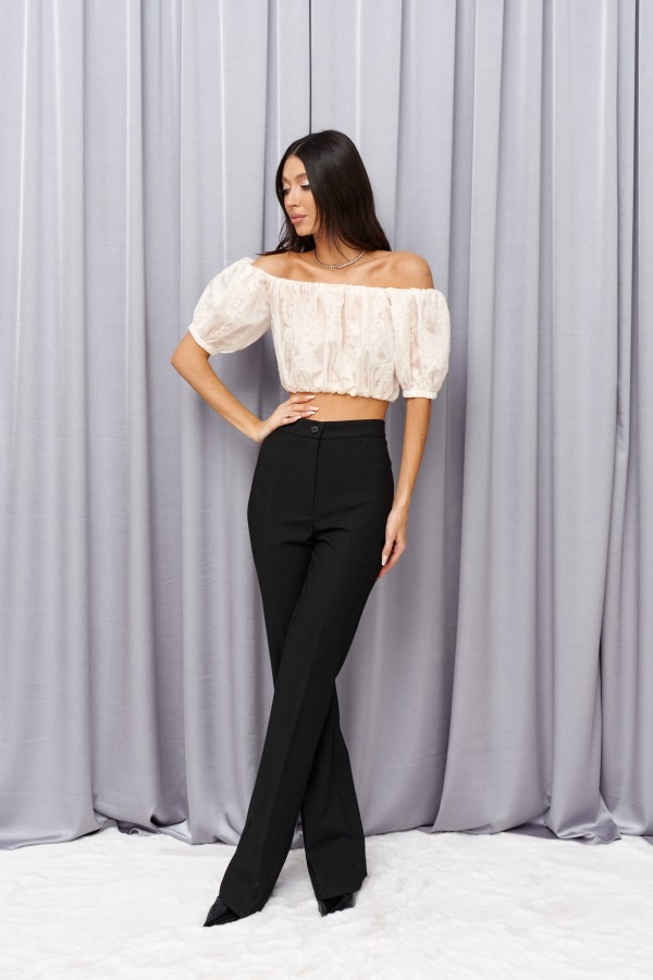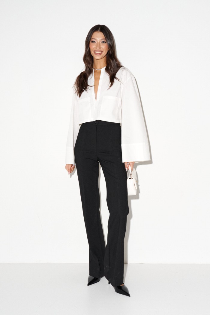 Брюки полуприлегающего силуэта с разведением к низу. Классические брюки базовый элемент гардероба. Идеально сочетаются с любым верхом. Характеристики: полуприлегающий силуэт, пояс стабильный, по переднему и заднему полотну брюк стрелки, по заднему полотну прорезные кармашки «обманки», длинна брюк по внутреннему шву 84 см.