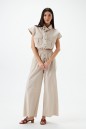 Брюки свободного кроя. Выполнены из хлопкового полотна. Пояс на резинке. По переду имитация застёжки с пуговичками. В боковых швах карманы. Длина 105 см