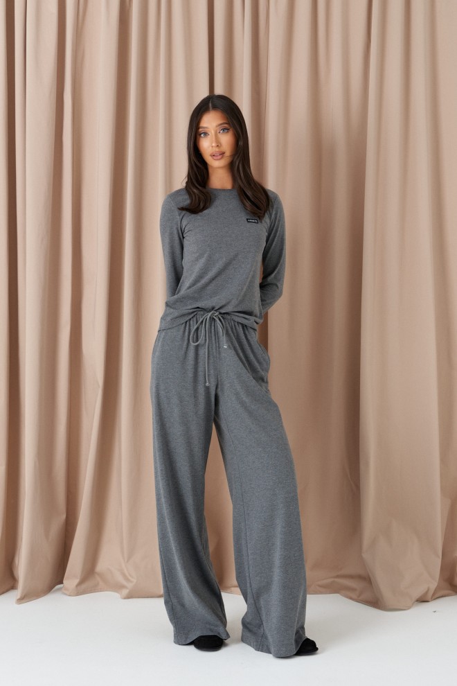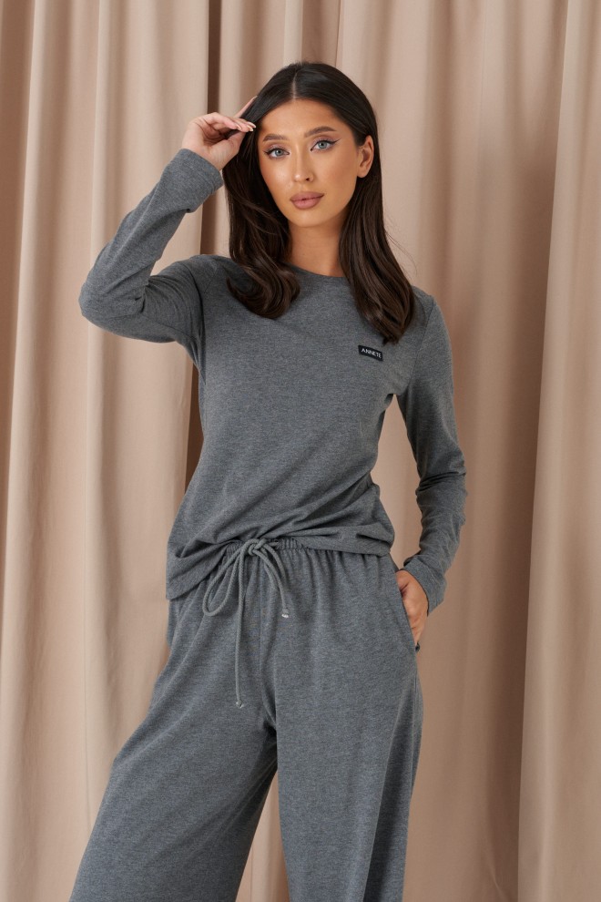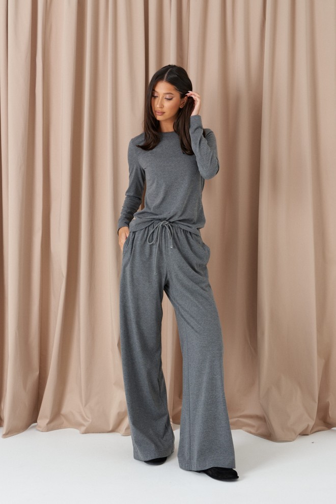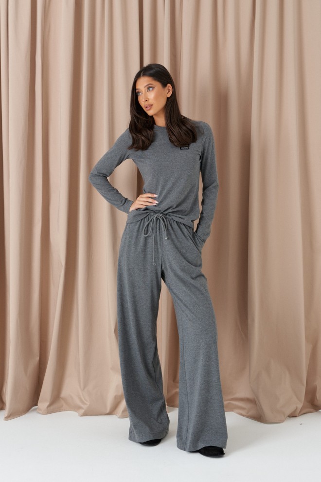 Брюки прямого, свободного кроя выполнены из трикотажного полотна.
