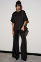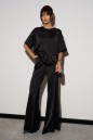Брюки прямого свободного кроя. Выполнены из мягкой струящейся ткани чёрного цвета. Пояс на резинке. Карманов нет. Длина 109 см