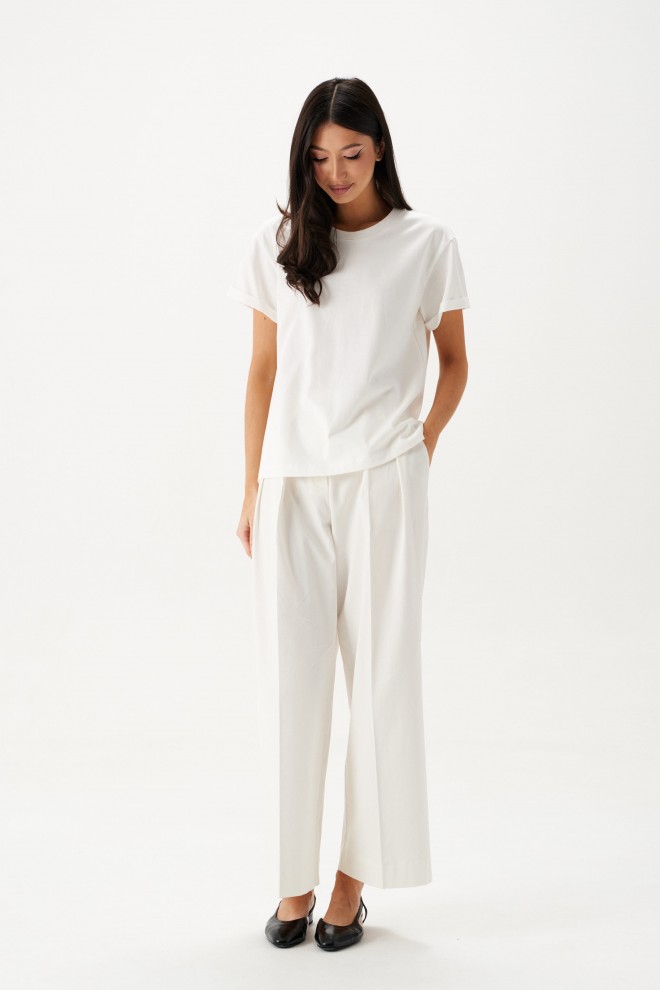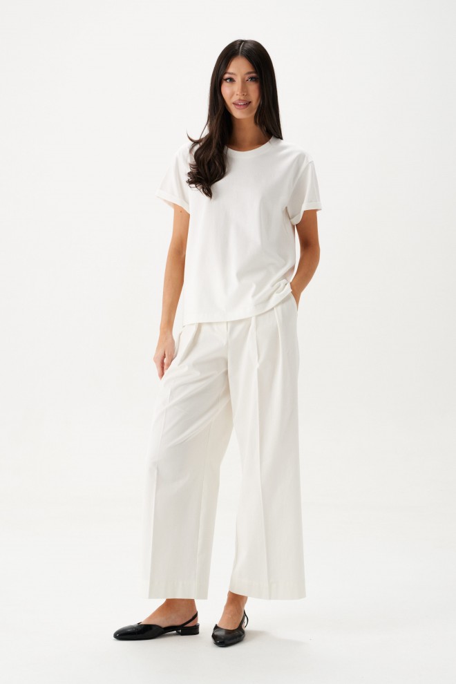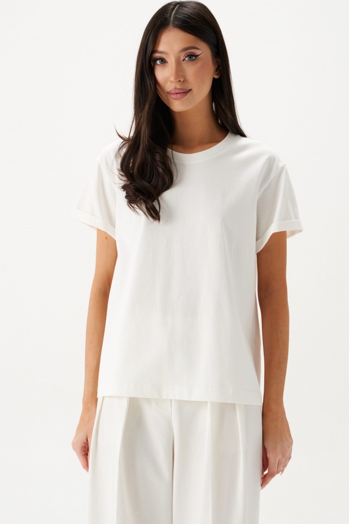 Футболка прямого кроя, выполнена из плотна белого цвета.