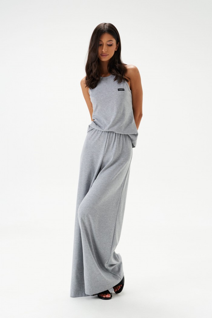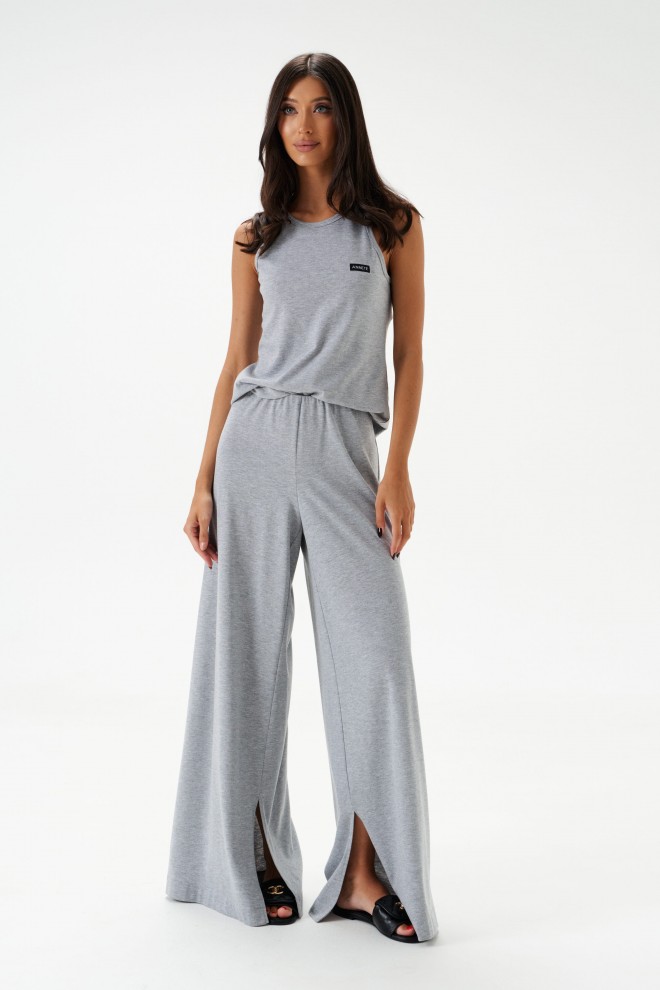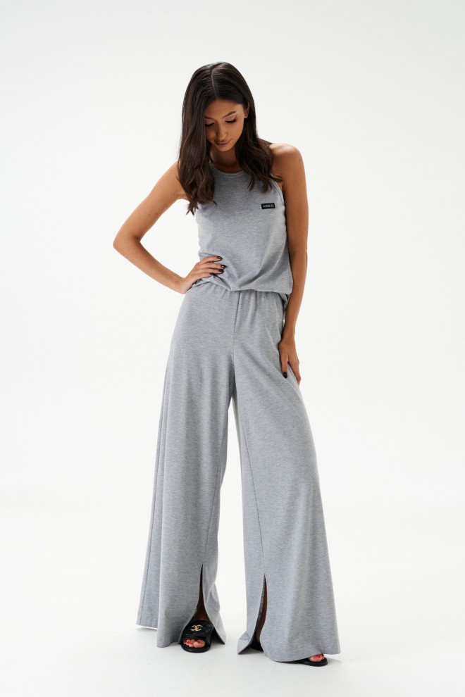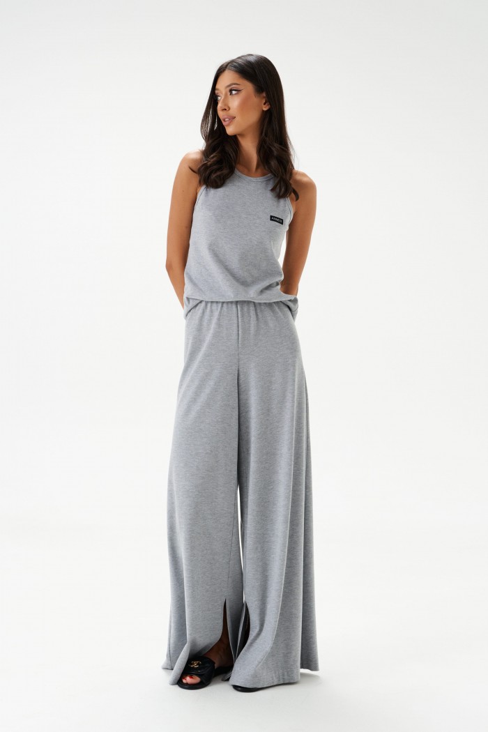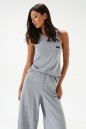 Топ прилегающего силуэта. Выполнен из трикотажного полотна серого цвета. Горловина круглая.Брендированная нашивка на линии груди. Длина спинки 57 см.