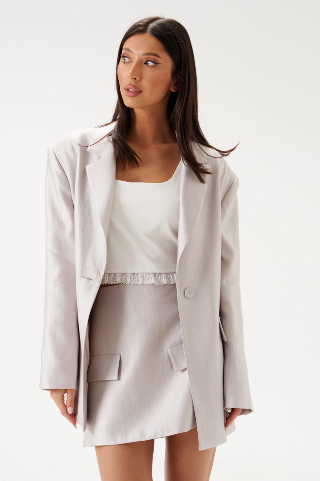 Топ прилегающего силуэта, выполнен из белого трикотажного полотна. Характеристика: прилегающий силуэт, дублированная ткань, по низу топа нишито кружево. Длина от верха шлейки 41см
