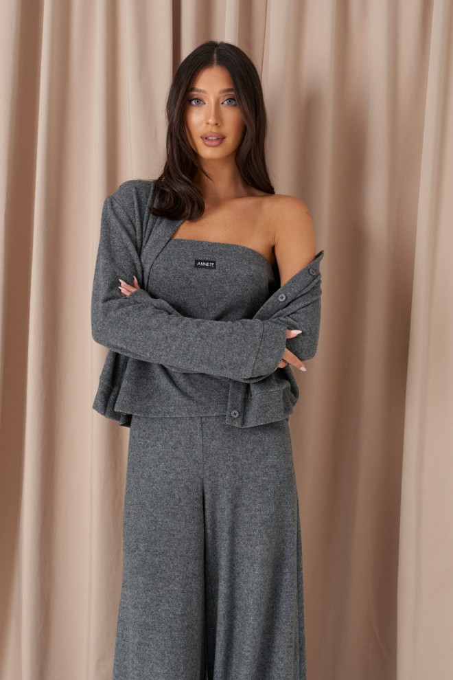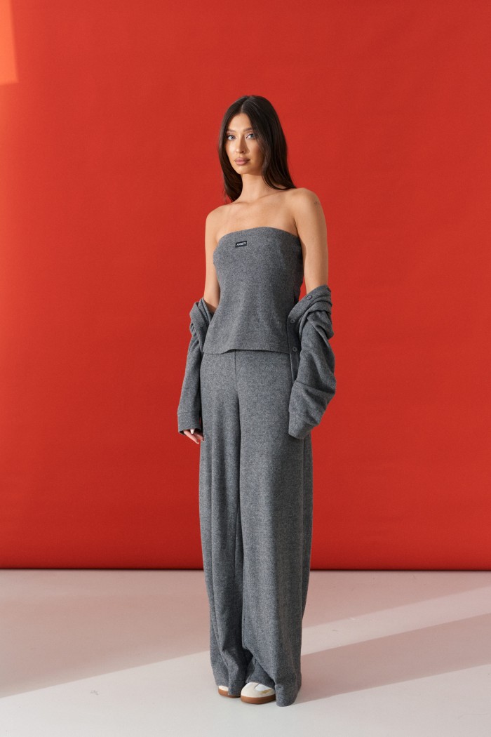 Топ прямого кроя с открытыми плечами, выполнен из трикотажного порсистого полотна серого цвета. Характеристика: прямой крой, верх изделия по передней и задней части на резинке, спереди брендированная нашивка. Длина по передней части 36см, по задней части 34см.