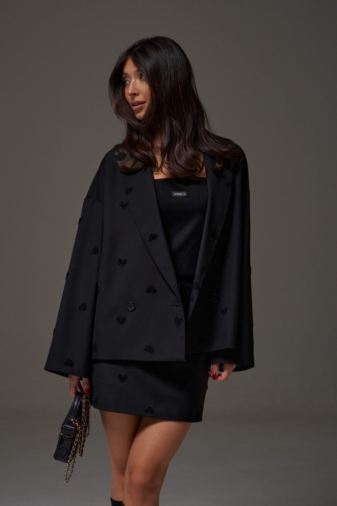 Топ прямого кроя с открытыми плечами, выполнен из трикотажного полотна черного цвета. Характеристика: прямой крой, верх изделия по передней и задней части на резинке, спереди брендированная нашивка. Длина по передней части 37 см, по задней части 34 см.