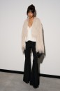 Укороченный кардиган, свободного кроя. Выполнен из полотна с длинным ворсом, кремового цвета с мелкими блестками. Характеристика: брендированная подкладка, рукав спущен. Длина по спинке 41см, длина рукава от края горловины 75см.