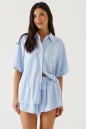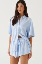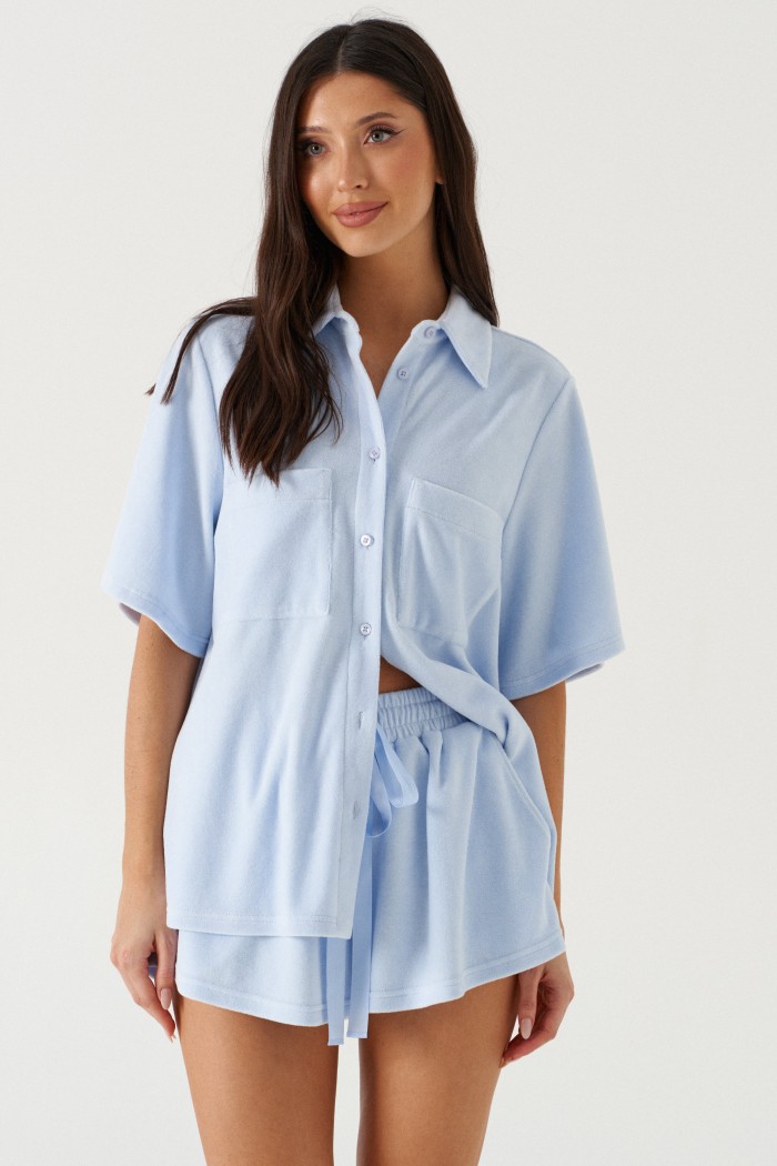 Комплект 2-х предметный. Выполнен из мягкой хлопковой ткани голубого цвета. Велюровая фактура. Без подкладки.