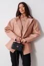 Куртка свободного кроя. Выполнена из эко-кожи розового цвета. С подкладкой. Воротник-стойка. Рукав реглан, с манжетом. Внутренняя часть изделия - манишка с центральной застёжкой - молнией. Основная часть изделия с прорезными карманами с листочкой. По линии талии - резинка, с кулиской, с фиксаторами. Длина рукава от горловины 79 см. Длина спинки 73 см