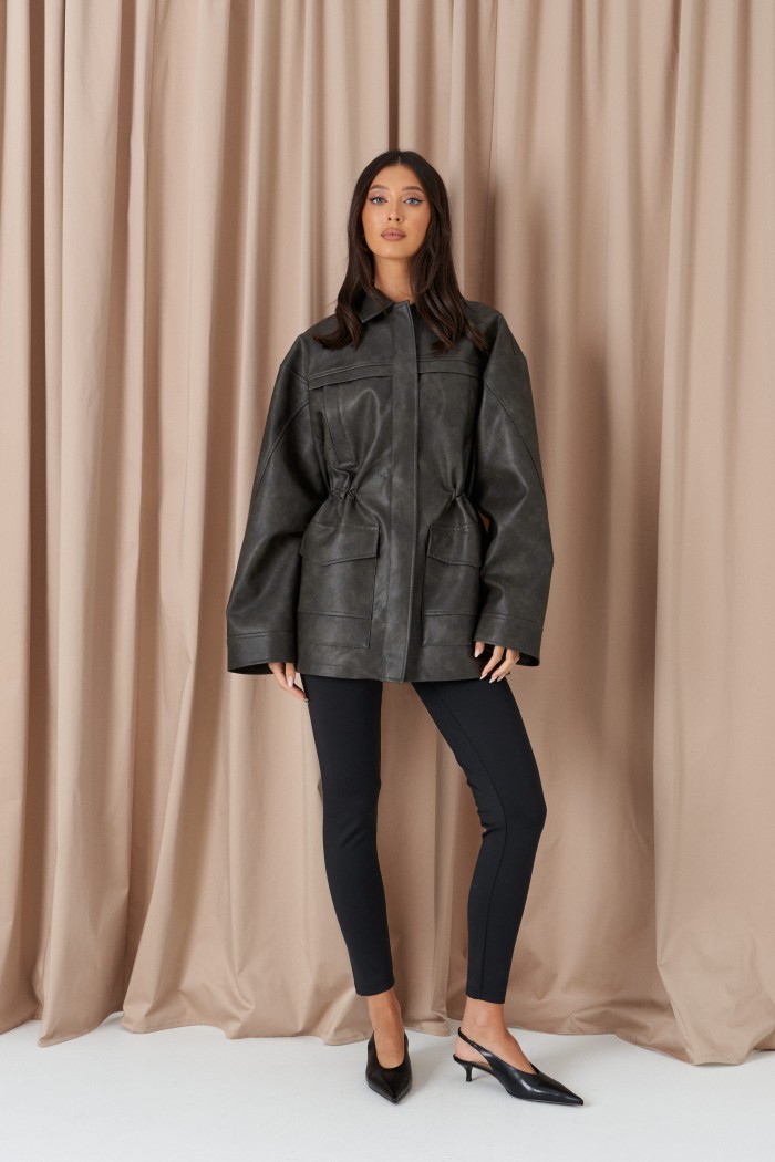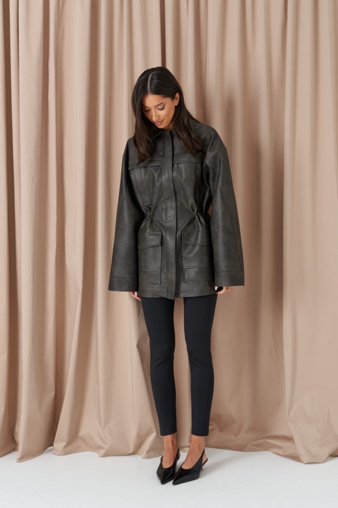Леггинсы. Выполнены из плотной эластичной ткани чёрного цвета. Пояс отрезной широкий из основной ткани. Длина 99 см
