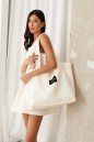 Платье-мини А-силуэта. Выполнено из фактурного хлопкового полотна светло-бежевого цвета. С подкладкой. Вырез горловины круглый. В боковых швах карманы. Застёжки нет. Длина спинки 76 см