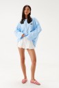 Шорты свободного кроя, выполнены из трехнитки белого цвета. Характеристики: укороченные, пояс на резинке приточной, кулирка. В боковых швах удлиненные карманы, выделяющиеся по низу шорт. Низ шорт прострочен, края не обработанны. Длина по боковому шву 30см