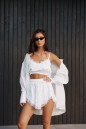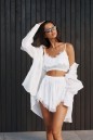 Шорты свободного кроя выполнены из струящейся ткани белого цвета.