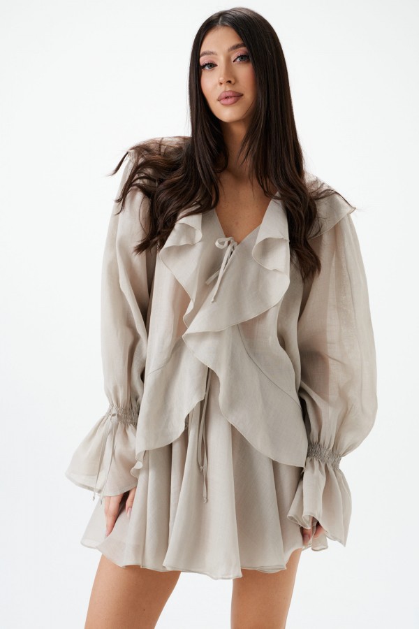 Юбка полуприлегающего силуэта, выполнена из лёгкого натурального полотна - рами. Плотная подкладка, пояс на кулиске, длина юбки 42 см.