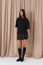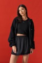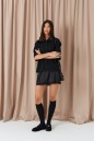 Юбка полуприлегающего силуэта выполнена из струящегося полотна черного цвета на брендированной подкладе. Характеристики: полуприлегающий силуэт, пояс на резинке, по низу изделия пришито кружево. Длина по боковому шву 40 см.