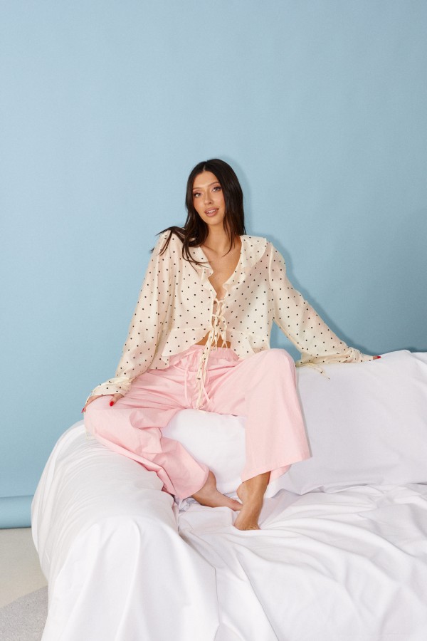 Юбка-миди. Выполнена из мягкого полупрозрачного полотна кремового цвета с горошком. С подкладкой-мини-шортики. Пояс на резинке. Длина 90 см