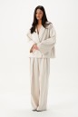Жакет прямого кроя. Жакет двубортный, подклад, воротник с остроугольным лацканом, в боковых швах изделия карманы, рукав спущеный, прямой. Длина рукава от края горловины длина 75 см. Длина жакета по спинке от края горловины 63 см.