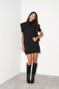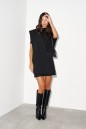 Жилет однобортный. Выполнен из костюмной ткани чёрного цвета Прямой крой, подклад, воротник отложной с широким лацканом, линия плеча спущенная. Застёжка смещённая - на одну пуговицу. Карман с клапаном (функциональный). Длина спинки жилета 76 см.