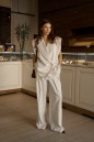 Жилет двубортный. Выполнен из костюмной ткани. Прямой крой, подклад, воротник отложной с широким лацканом, линия плеча спущенная. Застёжка смещённая - на одну пуговицу. Карман прорезной (функциональный). Длина спинке 69 см.